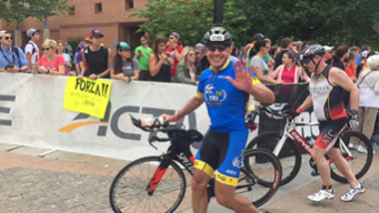 One highlight on the bike course is that the pros go by because of the double-loop nature of the course. Those guys (and gals) have different gears! Fun to see.